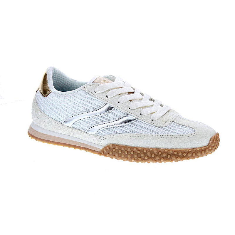 Descubre las zapatillas de mujer Gioseppo Chake, confeccionadas en piel y lona en tonos blanco y plata que combinan a la perfección con cualquier outfit. Estas zapatillas destacan por su cierre de cordones y su plantilla extraíble, proporcionando un ajuste personalizado y máximo confort.