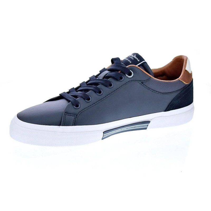 Los zapatos Pepe Jeans Kenton Court son la combinación perfecta de estilo y comodidad. Confeccionados con efecto piel en un elegante color azul marino, estos zapatos son ideales para cualquier ocasión. La suela blanca añade un toque moderno y fresco, asegurando que destacarás a donde quiera que vayas.