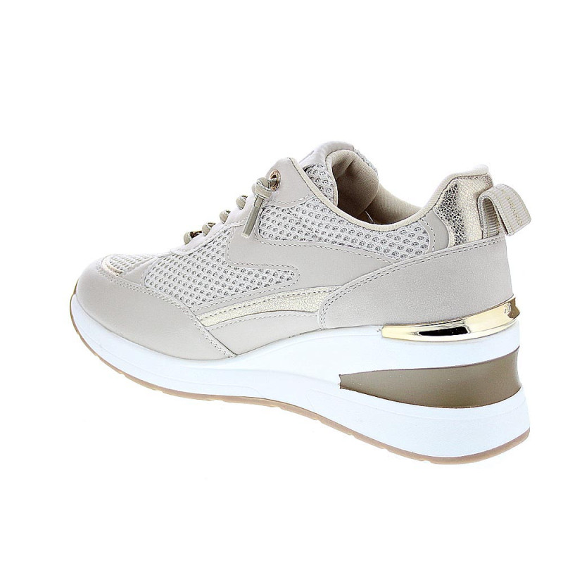 Las zapatillas Xti están diseñadas con una plantilla extraíble Comfort Tech se adapta a la forma de tu pie, garantizándote una comodidad excepcional en todo momento. Con el cierre de cordones elásticos muy fáciles de poner y quitar con los detalles en dorado, estas zapatillas en beige son el complemento ideal para cualquier ocasión.