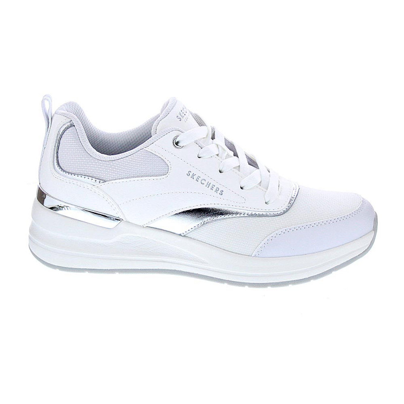 Con un diseño moderno y sofisticado, estas zapatillas veganas de skechers Billion 2 mujer están fabricadas con materiales sintéticos de alta calidad que son lavables a máquina, lo que las hace fáciles de mantener limpias y en buen estado. Con un diseño en blanco con detalles en plateado y suela blanca de cuña, estas zapatillas son perfectas para combinar con cualquier atuendo.