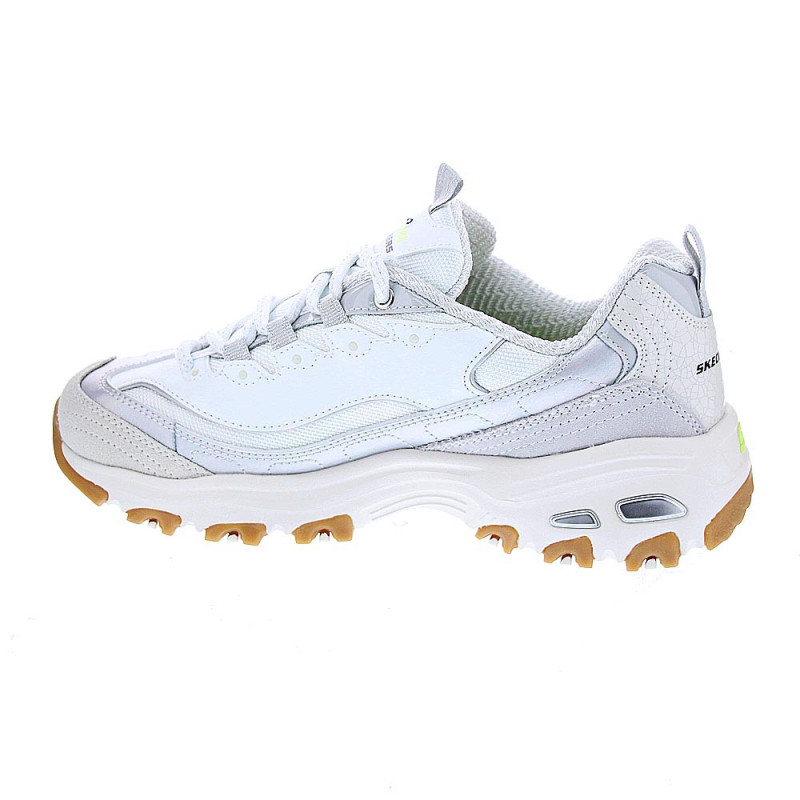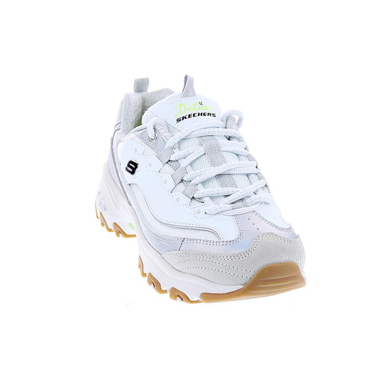 Fabricadas con materiales de alta calidad en cuero y textil, estas zapatillas en blanco y plateado te proporcionarán un look moderno y sofisticado. El cierre de cordones asegura un ajuste personalizado, mientras que la plantilla extraíble con amortiguación air-cooled memory foam brinda una sensación de pisada suave y acolchada a cada paso que des, las zapatillas D'Lites son la elección perfecta para una mujer activa y a la moda.