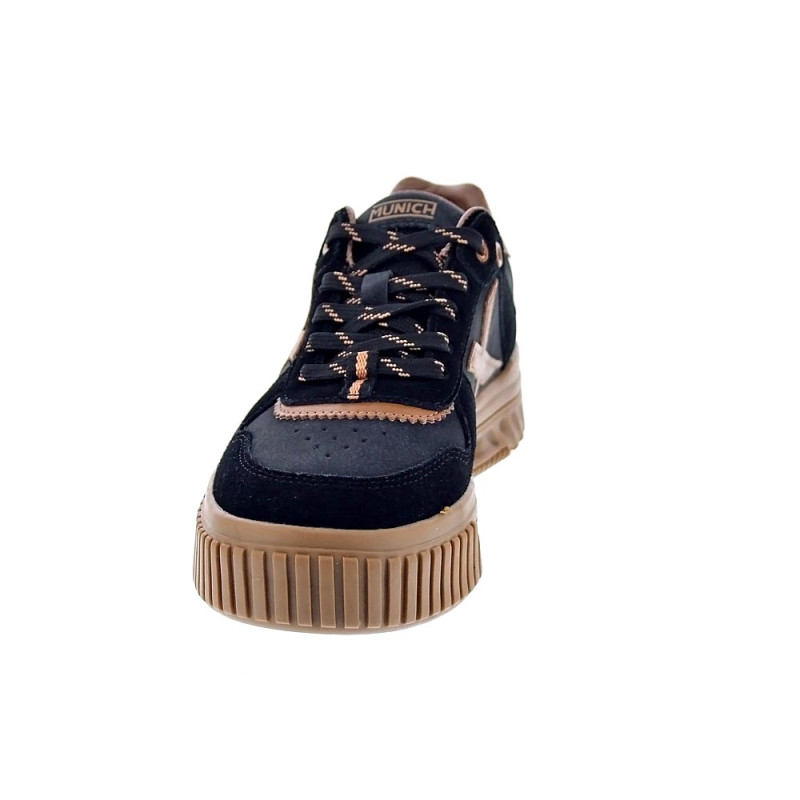 Descubre las zapatillas Munich Mina 08 para mujer, perfectas para agregar un toque de estilo a cualquier outfit casual. Elaboradas en materiales sintéticos y textil en un elegante color negro con detalles en marrón, estas zapatillas combinan a la perfección con una variedad de prendas. El cierre de cordones permite un ajuste seguro, mientras que la plantilla extraíble proporciona comodidad durante todo el día.