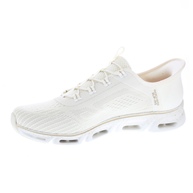 Las Skechers Glide Step Gratify Pace para mujer están diseñadas para ofrecerte la máxima comodidad durante tus caminatas. Con un diseño vegano en textil, estas zapatillas son una opción ética y sostenible, además de ser lavables a máquina para mayor facilidad de mantenimiento. Su estilo minimalista y moderno en un color beige y detalles en dorado , combinado con una suela blanca, asegura que no solo te sientas cómoda, sino también a la moda.