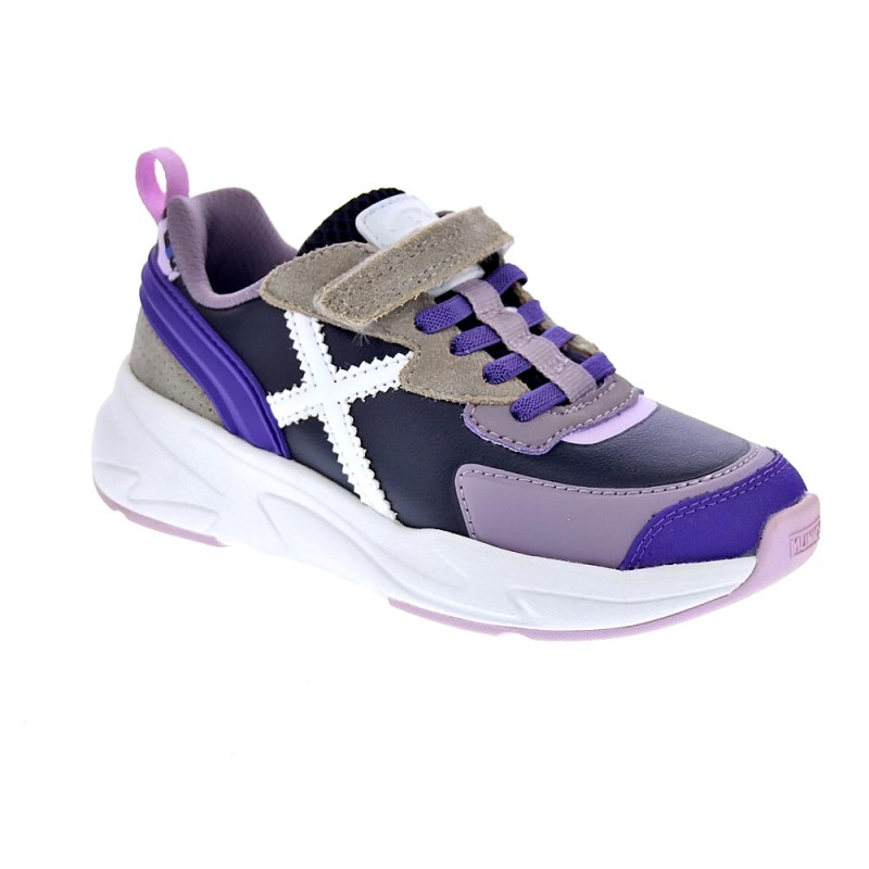 Descubre la comodidad y estilo que ofrecen las zapatillas Munich para niñas, con los cordones elásticos y velcro estos zapatos son perfectos para mantener a tu hijo activo y a la moda. En color lila con la combinación de colores en negro y gris hace un diseño moderno y colores vibrantes que harán que destaque en cualquier ocasión.